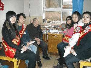 福利院里住着能自理的,半自理的和需要全护理的老人,我们的志愿者搀扶部分老人坐在大厅,帮他们量血压,讲解一些老年保健知识,还有志愿者进入需要半护理和全护理老人的房间,帮他们量血压和陪他们聊天,还有个别志愿者自带水果和瓜子与老人一起分享。