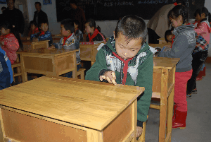 4月24日早,辛庄小学的孩子们早早等候在教室里。在短短的交接仪式上,太原市人口计生委、阳曲县人口计生局、教育局的领导为胡永昌先生和武玉梅女士颁发了荣誉证书,感谢他们为改善农村小学教学条件,提高人口素质做出的贡献。主持人在致辞中表示捐助学校的课桌代表着社会对农村孩子们成长的关注和爱心,希望同学们努力学习,健康成长。学生们高声的“胡叔叔好!武阿姨好!”的答谢使教室里暖意浓浓。一张张崭新的课桌从车上卸下,老师和学生们纷纷涌上前来帮着运送和摆放。志愿者们还掏出纸巾、手绢细心的为孩子们把课桌上的雨水擦干净。孩子们便迫不及待地坐在了崭新的课桌旁,摆上书本和文具,期待着老师开始讲授他们使用新课桌的第一堂课。他们高兴地说,“现在我们每个人都有新课桌了,再也不用担心被桌椅上的钉子划破衣服了。我以后上课一定会更加专心,努力学习”。