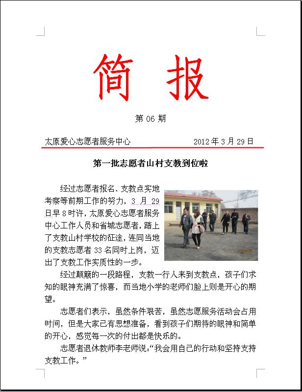 简报06:第一批志愿者支教到位