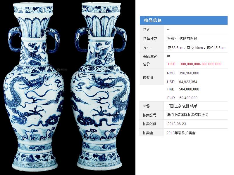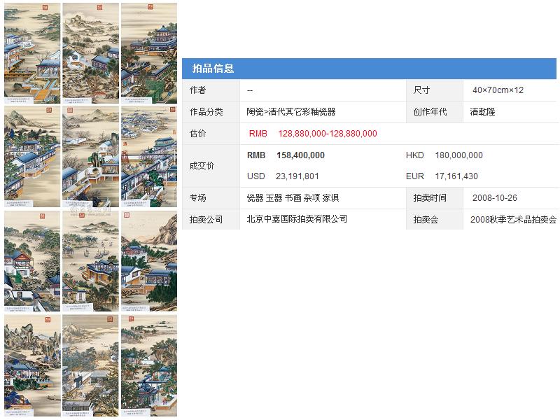 清:乾隆粉彩镂空“吉庆有余”转 【导读】清乾隆年代官窑花瓶,体态匀称,色泽饱满典雅,瓶身鲤鱼图案栩栩如生,配以镂空水波纹雕花设计,显得大气富贵,恰到好处地映衬了瓶颈上的红色“吉”字中所蕴含的吉祥之意。该拍品内绘青花,外画洋彩、珐琅彩、粉彩,运用描金,镂空、转心、浮雕、浅刻等多种工艺,极尽奢华、叹为观止,属于清三代瓷器中的巅峰之作。…… 宋:北宋官窑深腹碗【导读】北宋官窑传世极少,十分珍稀名贵。现除上海博物馆有四片瓷片, 台湾鸿禧美术馆有一片瓷片, 中国文物考古部门在北宋官窑的窑址曾发掘出土几件残器和瓷片外, 全世界迄今没有一件完整器。由于北宋官窑是从汝官窑进化而来,故更显珍贵,文物价值、历史价值、收藏价值等远远超过汝窑。说明:深腹碗 敞口,斜壁,直圈足,底面上有 4 个圆形支钉痕。通体淡青釉略泛绿。玻璃质感较强,器表开片纹密集。……
