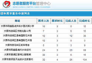 数据管理,志愿者通过在网站注册,把个人的信息输入的网站的数据库,每次服务或活动后的情况录入到数据库,经过中心管理人员的审核,即可汇总出每个志愿者的活动时间、活动次数、服务质量等,服务中心对整个志愿者的状态有了详细的了解。志愿者本人也可汇总和查询到自己每次的服务记录,实现了服务储蓄。截至目前为止:在网站上注册的个人志愿者达到2242人,团体志愿单位10个。审核活动开展1848人次,审核服务时长12941小时,五个大类的服务均都涉及。